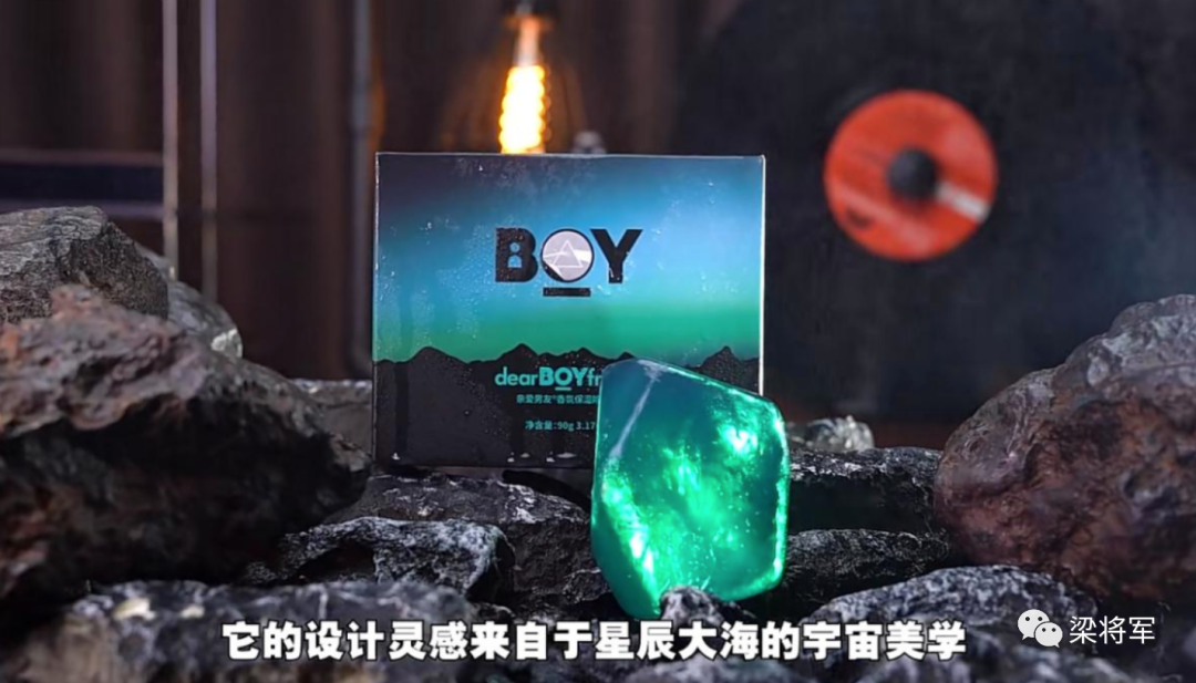 而且,这块香皂的形状特别的酷。如果你看过漫威电影,你会联想起灭霸收集的星际原石。包装上的黑绿色调,极具极光色彩,其实也切中了男性的硬核审美喜好。