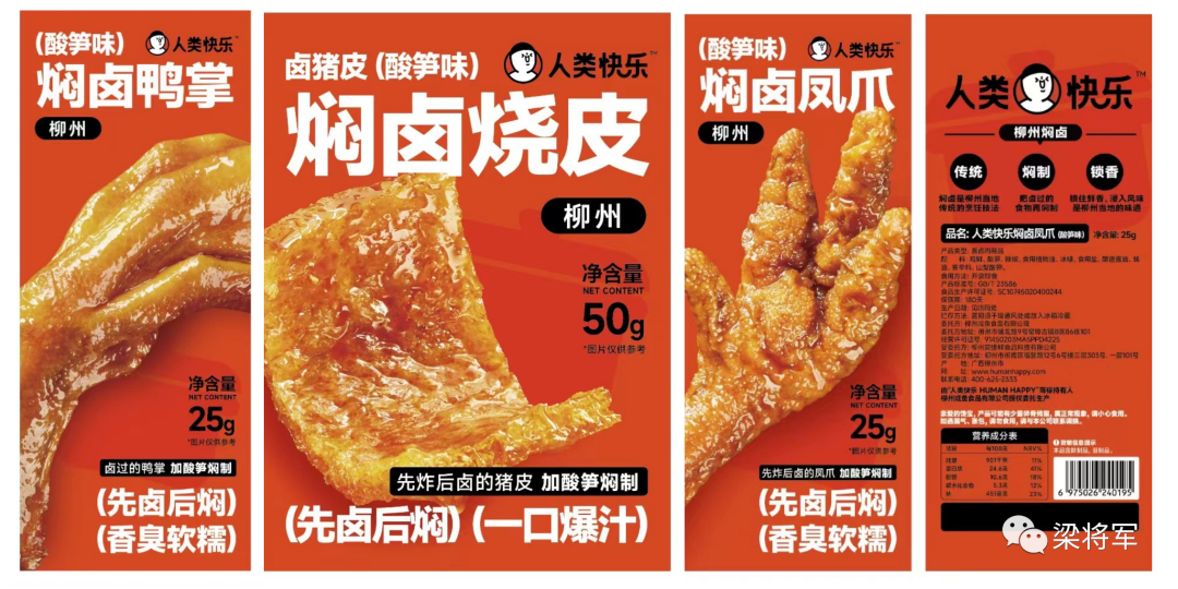 我们发现线下餐饮店螺蛳粉或米粉的吃法,还没有被速食化。比如在吃螺蛳粉时,要配炸蛋、鸭脚、猪蹄、烧皮等等。于是,我们又开发了几款卤味品。