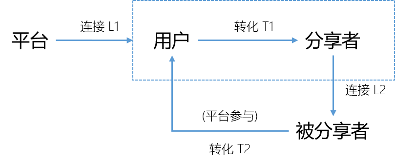 个人理解,主要是三个要素:奖励的大小、行为的难易、人数的多少,三者之间相互关联,需要设计者根据情况自行考量。至此,用户到分享者转化的过程完成,平台进入被分享者的视野。