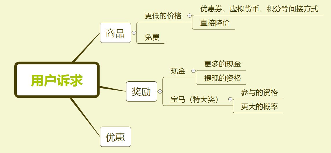 - 商品:相对奖励,商品需考虑被分享者的喜好很可能与分享者不同,如果打的商品不对,更低价格甚至免费获取的诉求都不会产生。