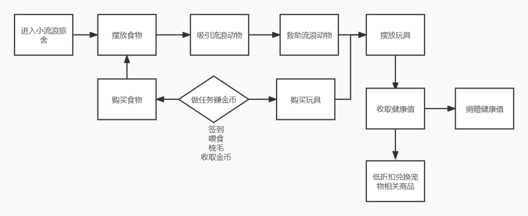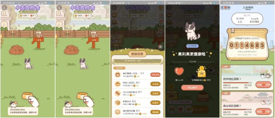在游戏里的每一只流浪动物,都会更新它的近况,用户能够实时感知到自己贡献的爱心起到了什么作用,用户能从中获得满足感和成就感,也更愿意去捐献爱心。