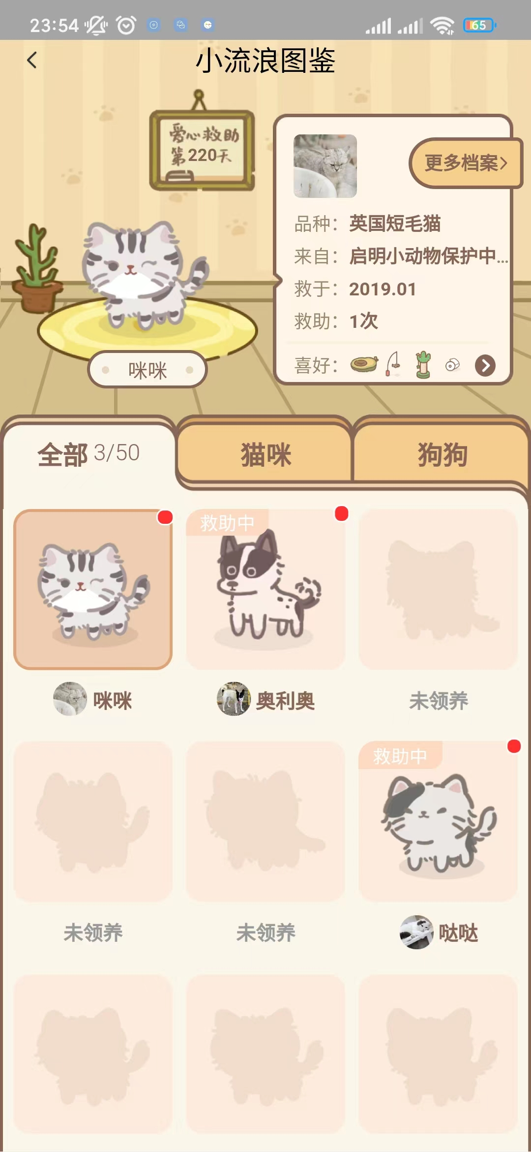 在我的萌宠栏目中也有小流浪旅舍的入口,进入这个模块的用户,也能够看到并进入小流浪旅舍。