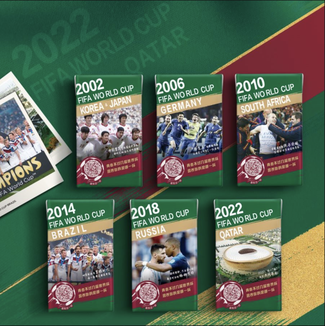 同时,随着两支短片的推出,蒙牛还先后上线了12款回忆杀世界杯主题的系列产品和32强国旗定制包装产品,以产品承接住TVC的内容,为消费者怀旧情绪与情感找到一个实体的承载。