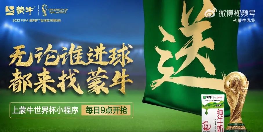 昨天,蒙牛还在世界杯即将正式开幕前推出了一支新的短片。短片一方面以「要强不分赛场」,直接点明了用户为梦想不停奔跑与足球运动员在赛场上「要强」精神的共性;另一方面还在片尾的彩蛋中,放出了世界杯每进1球蒙牛就送1000箱牛奶的福利活动,以「无论谁进球,都来找蒙牛」凸显蒙牛2022FIFA世界杯™全球官方赞助商的身份。