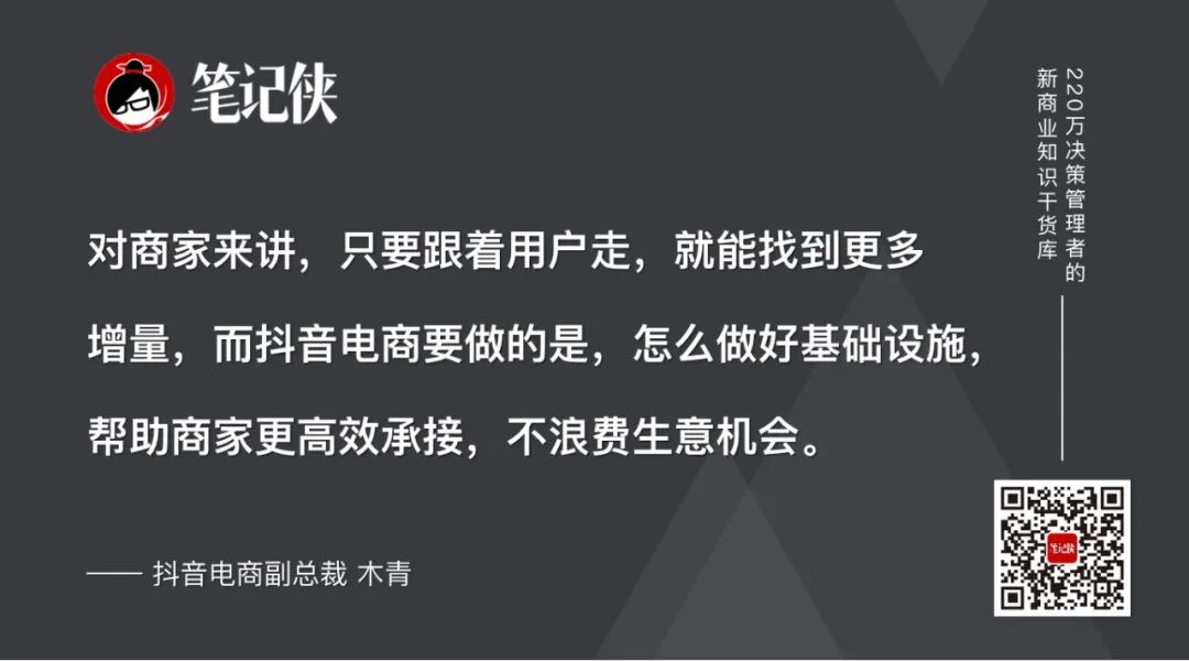 由此抖音电商副总裁木青认为,对商家来讲,只要跟着用户走,就能找到更多增量,而抖音电商要做的是,怎么做好基础设施,帮助商家更高效承接,不浪费生意机会。
