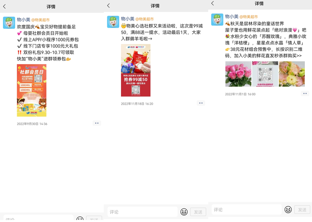 物美超市创建了很多垂直社群,不仅能很好地接触用户、与用户互动、也能更清楚地了解用户的反馈和需求。