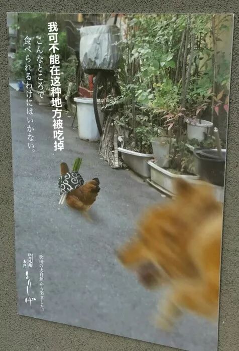 比如烤鸡店一般都能想到,食材是重要的卖点,但是当大家都主打食材卖点时,下面这个日本某烤鸡店的广告,就以独特创意宣传了食材,做到了与其他店的区隔。
