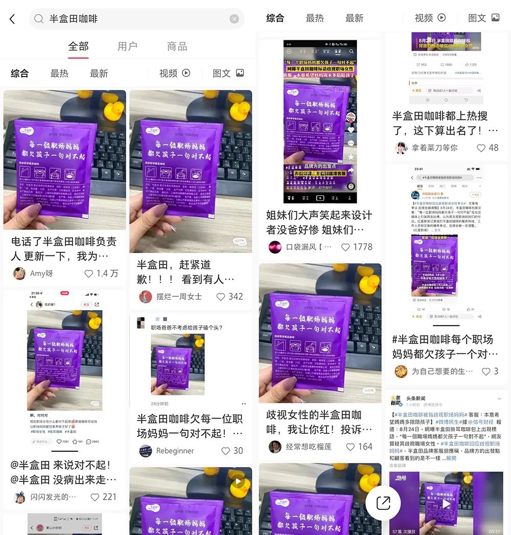 但你可能也会有这样的观点:虽然被很多人骂,但半盒田咖啡也确实通过这次舆情事件更“知名”了,对于新消费品牌来说,免费打了广告,也有好的一面。