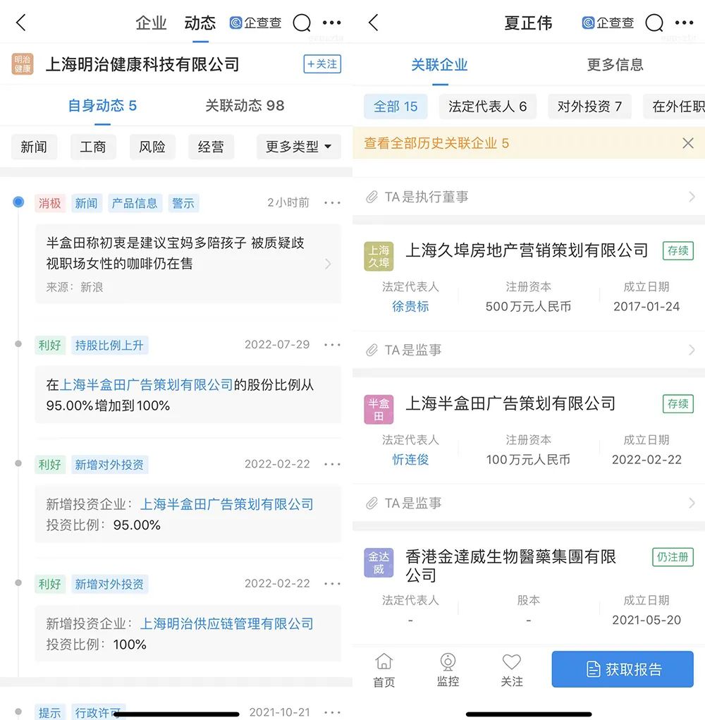 半盒田咖啡的背后团队也浮出水面,是一家叫做“明治健康”的 公司。