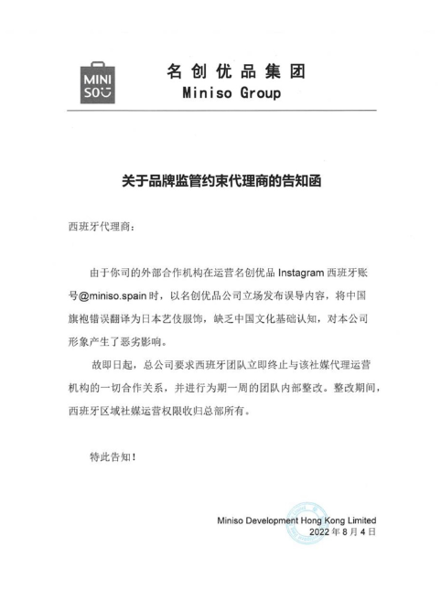 8月9日22点18分,@名创优品 官方微博发布致歉声明,称: