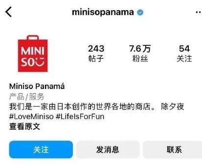 先是有网友爆料,名创优品在巴拿马地区的社交媒体账号上,账号介绍中公然标明自己是“日本创作”的品牌。