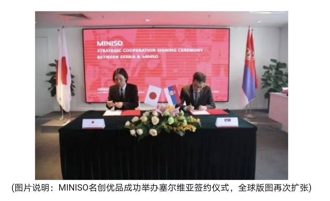 有媒体翻出了名创优品2015年至2018年间,业务扩展至马来西亚、罗马尼亚、以色列、塞尔维亚、亚美尼亚等地时,签约仪式上悬挂日本国旗的照片。