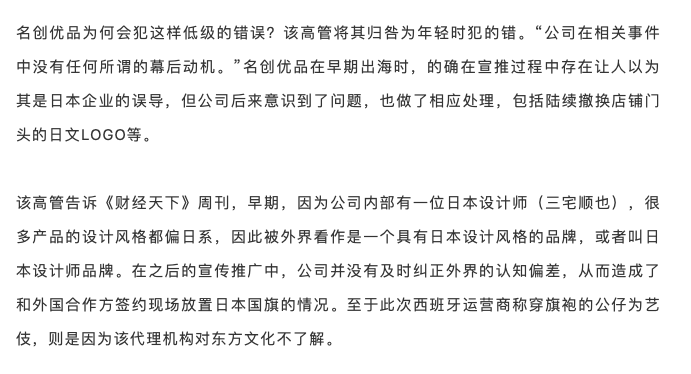 8月11日,AI财经社发了一篇题为《名创优品“伪日”大起底》的报道,某名创优品高管接受了电话采访。