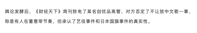 名创优品相关负责人应该是在10日接受接受媒体采访时,比如明确否认“店内不让播中国歌”的网传评论,但由于在回应的方式上,选择了匿名,导致这个辟谣的说服力很低。