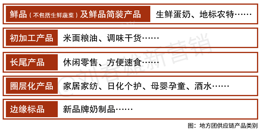 地方团供应链产品非常独特,归纳起来大致有以下几类: