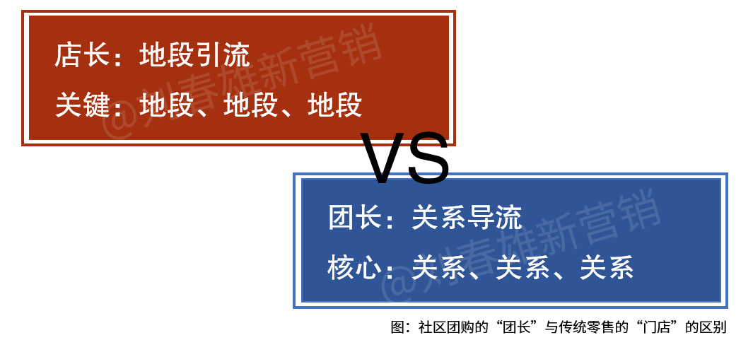 社区团购的“团长”与传统零售的“门店”的区别是:店长是地段引流。选址的关键是地段、地段、地段;团长是关系导流,核心是关系、关系、关系。