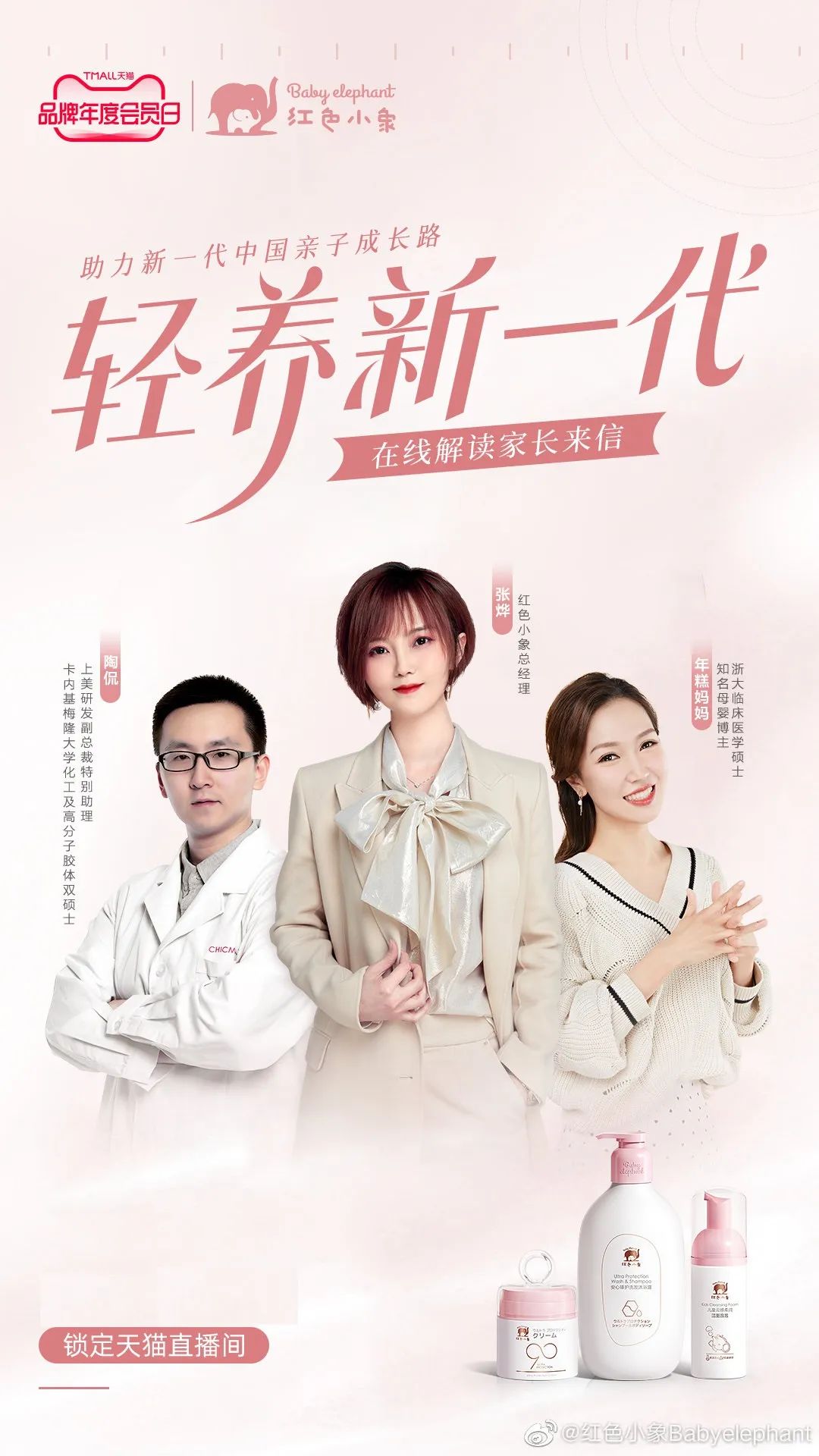 为承接前期传播蓄积的声量与流量,红色小象同步在直播间开启“轻养新一代”育儿趋势圆桌讨论,联合母婴达人年糕妈妈,特邀品牌总经理张烨女士,品牌科研代表、自主原料开发负责人、美国名校双硕士陶侃先生,共同探讨中国父母新时代育儿观念,达成超21万的观看量。