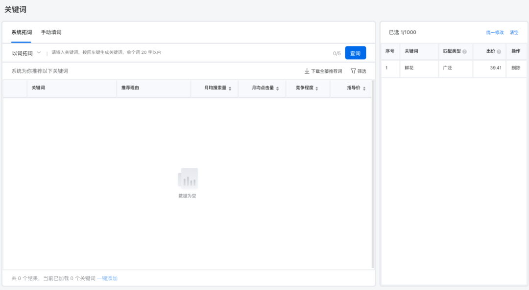 目前腾讯广告搜索广告主要支持“系统拓词”和“手动填词”这两种方式。