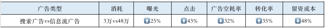 另一方面,做搜索广告可以有效降低成本。其实也很好理解。用户在信息流里面看到的广告其实是被动地看,系统推荐什么,用户就看什么。相当于我们日常逛街,随便走,碰见什么了,我就看见什么。