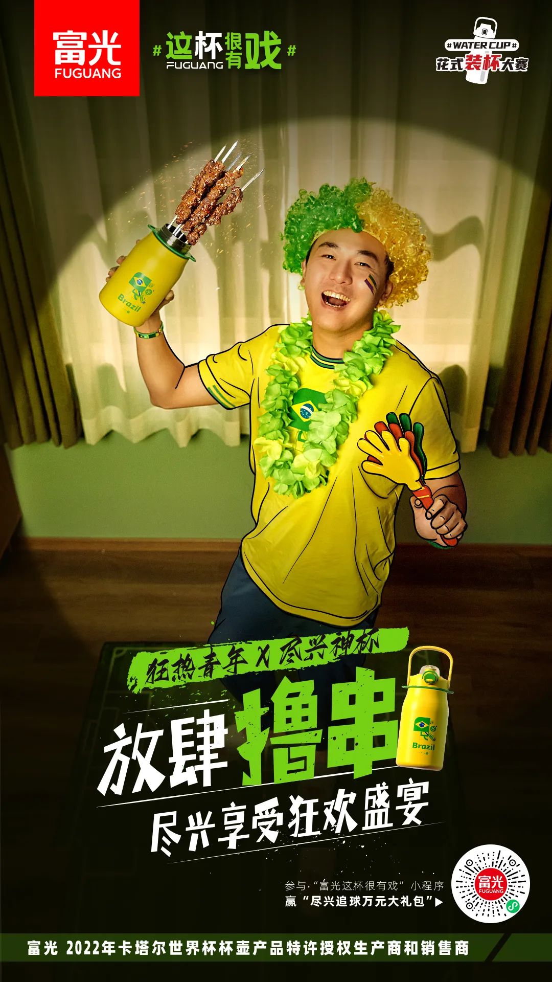 而为了更好地与球迷和消费者玩在一起,富光还设置了#富光这杯很有戏#小程序创意玩法,吸引众多消费者沉浸式参与到世界杯互动好戏中。
