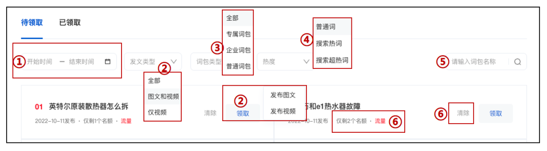 - 认领词包后,图文的创作时间为2天,视频的创作时间为5天(自词包认领时间开始),如超过时间还未发布相关内容,词包将会被释放;