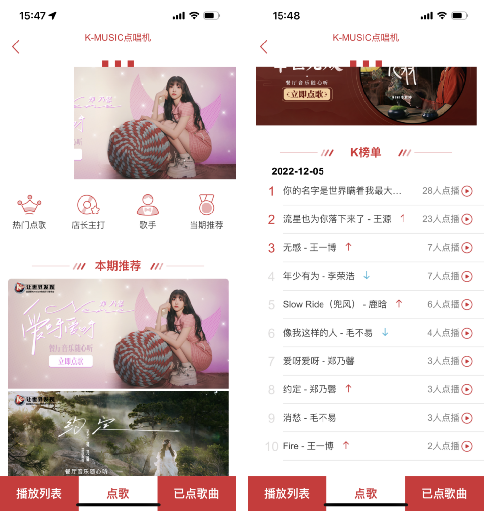 除了点餐,肯德基还深化了门店与用户的连接,开发出交给用户定制店内背景音乐的 K-Music 点歌功能。