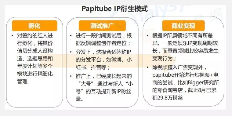 3、MCN平台IP矩阵打造:MCN平台持续孵化短视频IP,打造IP矩阵或尝试自创品牌转向电商。