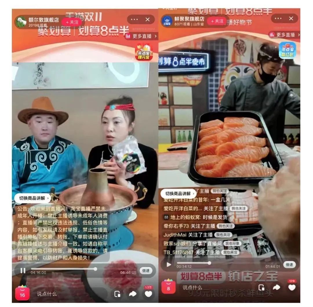 对各大商家品牌而言,不同于普通的明星直播卖货模式,在聚划算,各大商家品牌能够走出一条“夜市氛围感”的特色直播路径。比如卖羊肉的商家就直接在蒙古包里现切羊肉,切完再支起铜锅涮羊肉,一顿操作直接吸引了超过2万人涌入直播间围观。