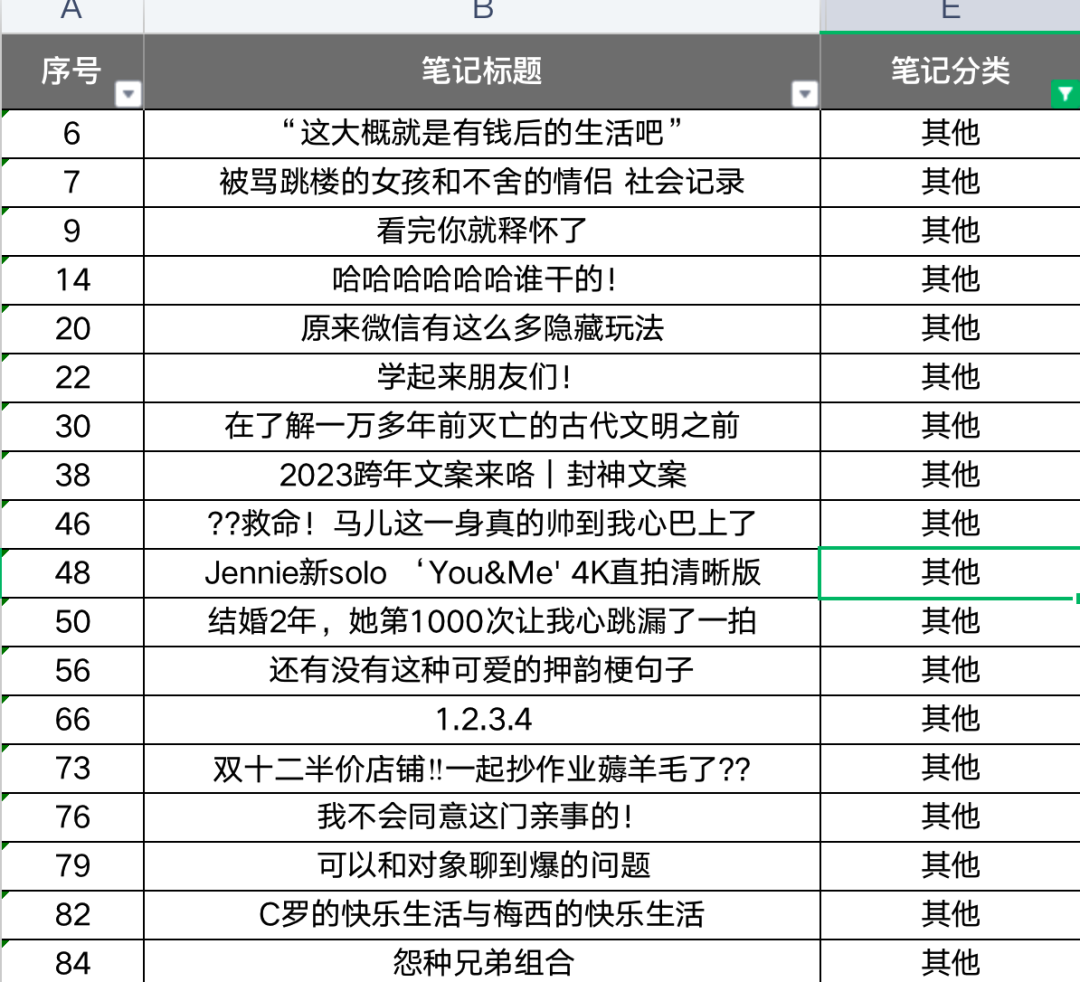 目前来看,这几大类目都能理解,唯独“其他”令人不解,所以我们单独拉出来其他看看到底是什么样的笔记。