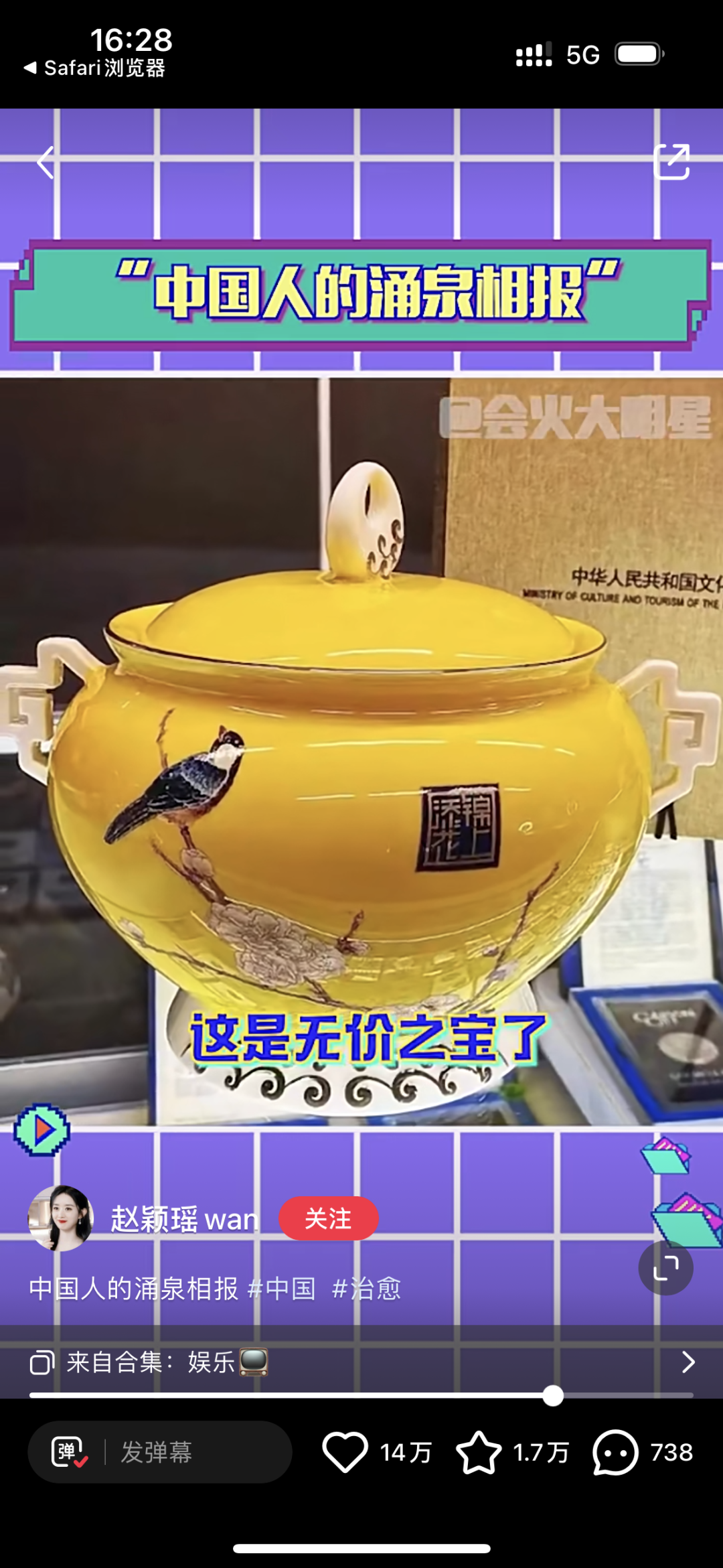 这是我抽到其中一篇,点赞高达14万,很难想象这只是7天的数据吧....内容里讲的是一个外国人将一些历史侵华证据送给了中国,所以中国回赠了一个国宝级礼物,但外国人刚开始还不太识货,以为只是普通的产品,后来才知道具体价值。