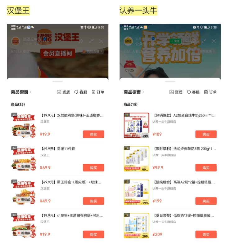 案例名称:汉堡王&认养一头牛视频号直播策略对比分析