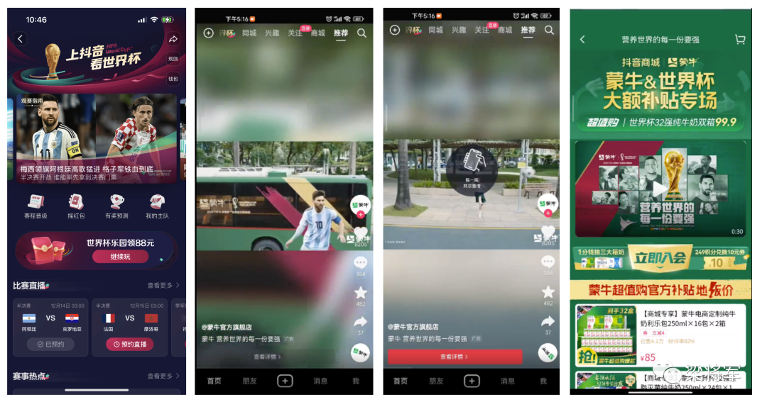 世界杯每场比赛的得分,只有真正的足球迷才会如数家珍。而“消费”世界杯的人,只有一小部分是看球的,大部分都是看热闹的。看热闹的伪球迷,一定比认真看球的真球迷多。而今年的世界杯,大家都在抖音上看。短视频的短平快,把更多“看热闹的伪球迷”卷进了世界杯的消费里。