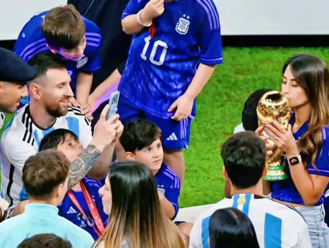 阿根廷队获胜的荣耀时刻,球王梅西却在为手捧大力神杯的妻子拍照,神情专注异常,不由让人赞叹,梅西与初恋妻子安东内拉相伴26年的甜蜜爱情故事,真是太让人羡慕了。