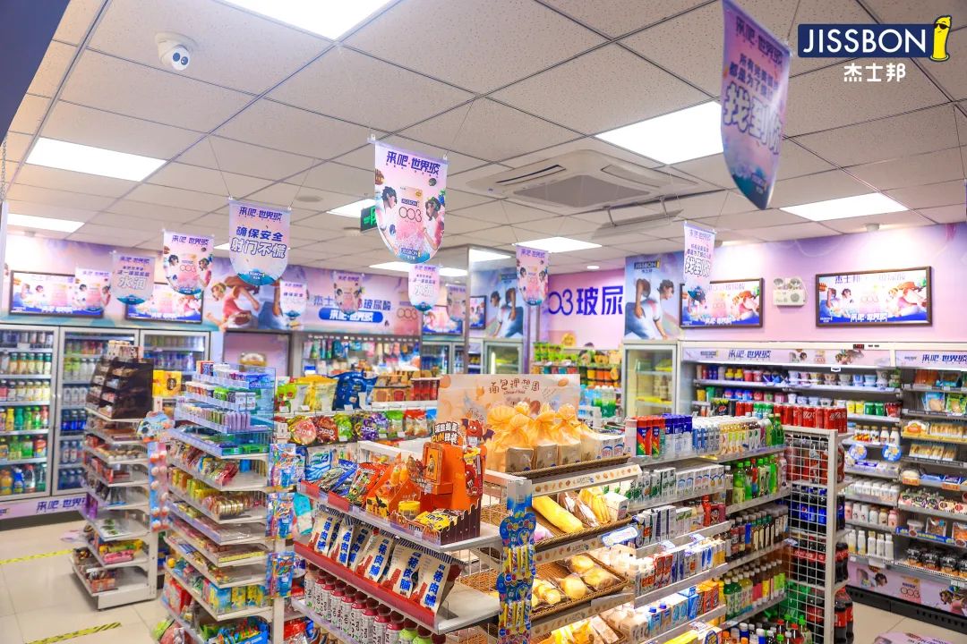 杰士邦联合罗森等各大连锁便利店,进行世界杯主题整体店铺改造,也与全国各地的商业购物中心合作,举办世界杯主题活动,让消费者在享受线上狂欢之余,也能在线下继续热血,沉浸在杰士邦构建的赛事盛景中。