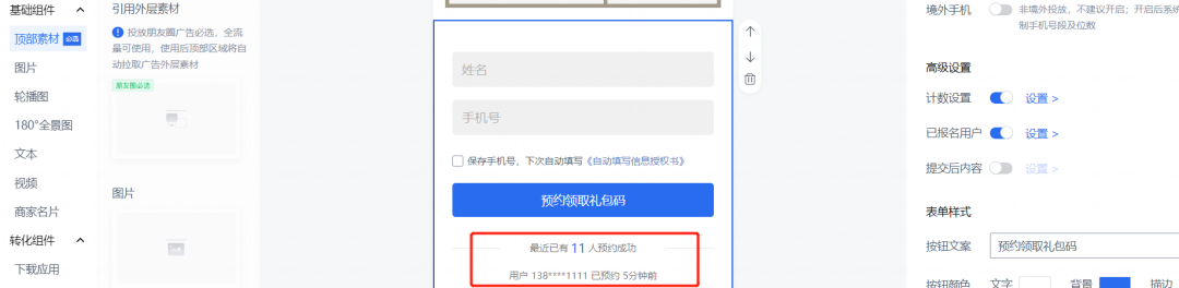 另外,在预约阶段,还可增加【计数设置】,通过人云亦云的从众心理,提升用户预约率。