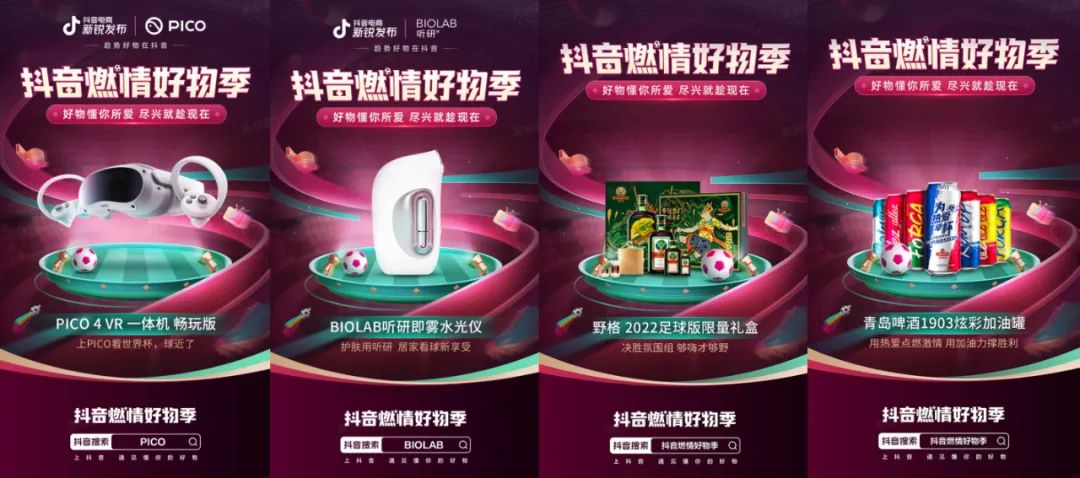 与此同时,抖音电商还在活动期间与品牌们联合宣发,借力品牌们的“赞助身份”,吸引更多对世界杯商品感兴趣的用户到站。