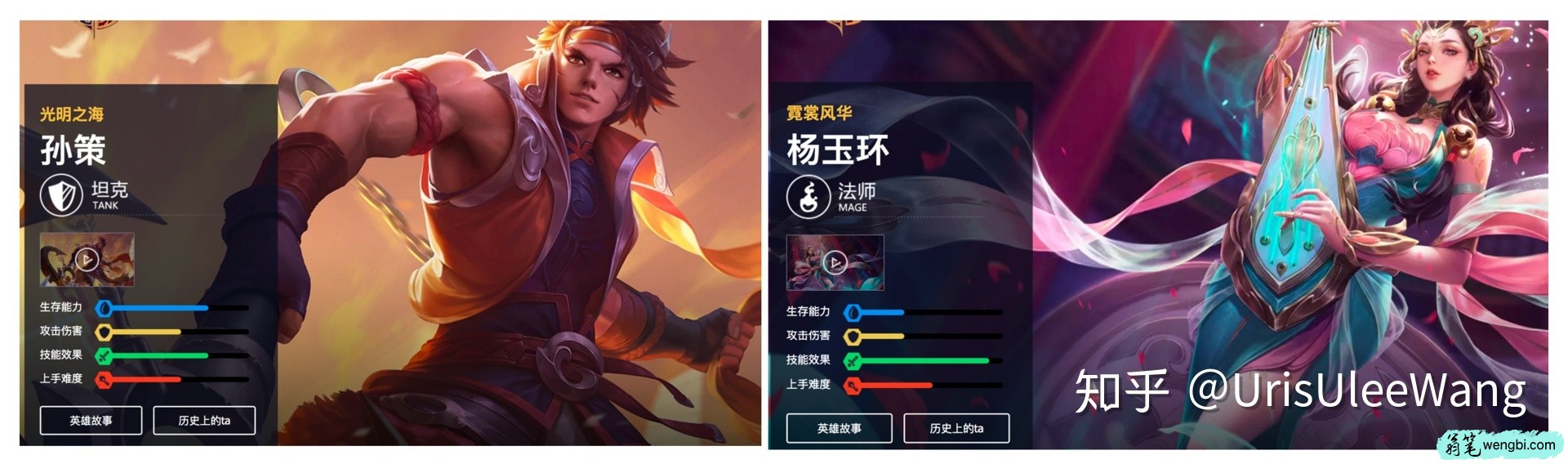 ③ 多职业定位。提供坦克、战士、刺客、法师、射手、辅助共6大职业体系,不同的英雄会有不同的生存能力、攻击伤害、技能效果和上手难度。让用户可以自主选择最适合自己操作能力的上手的英雄。