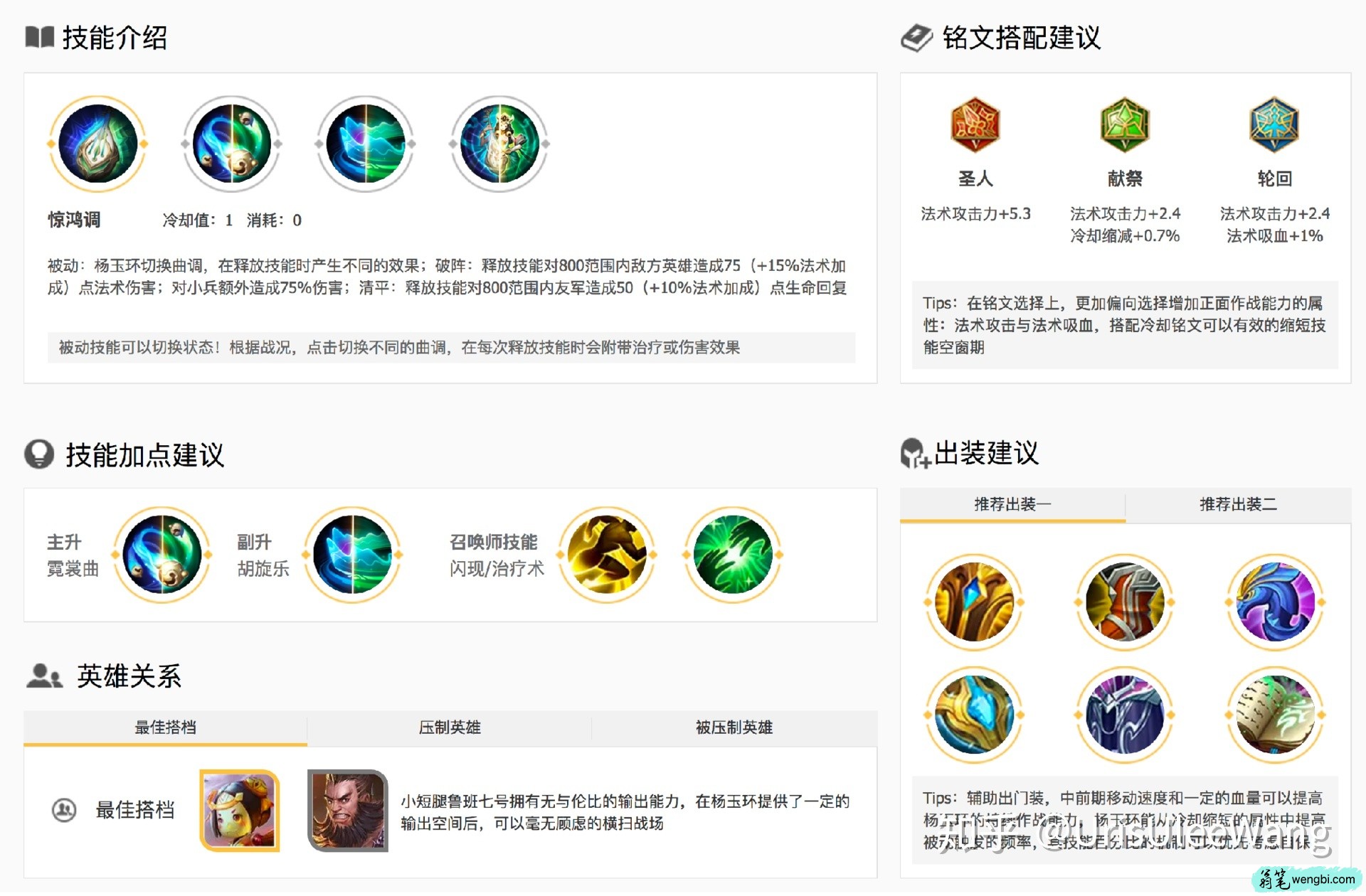 同时,还为用户提供该对应职业和角色的使用参考。什么都不懂,小白一个,实战不知如何反应。没关系!提供给你最佳的铭文搭配、技能加团队配合和出装建议。用户采用官方建议,就能避免沦为在团队中被喷菜的命运。