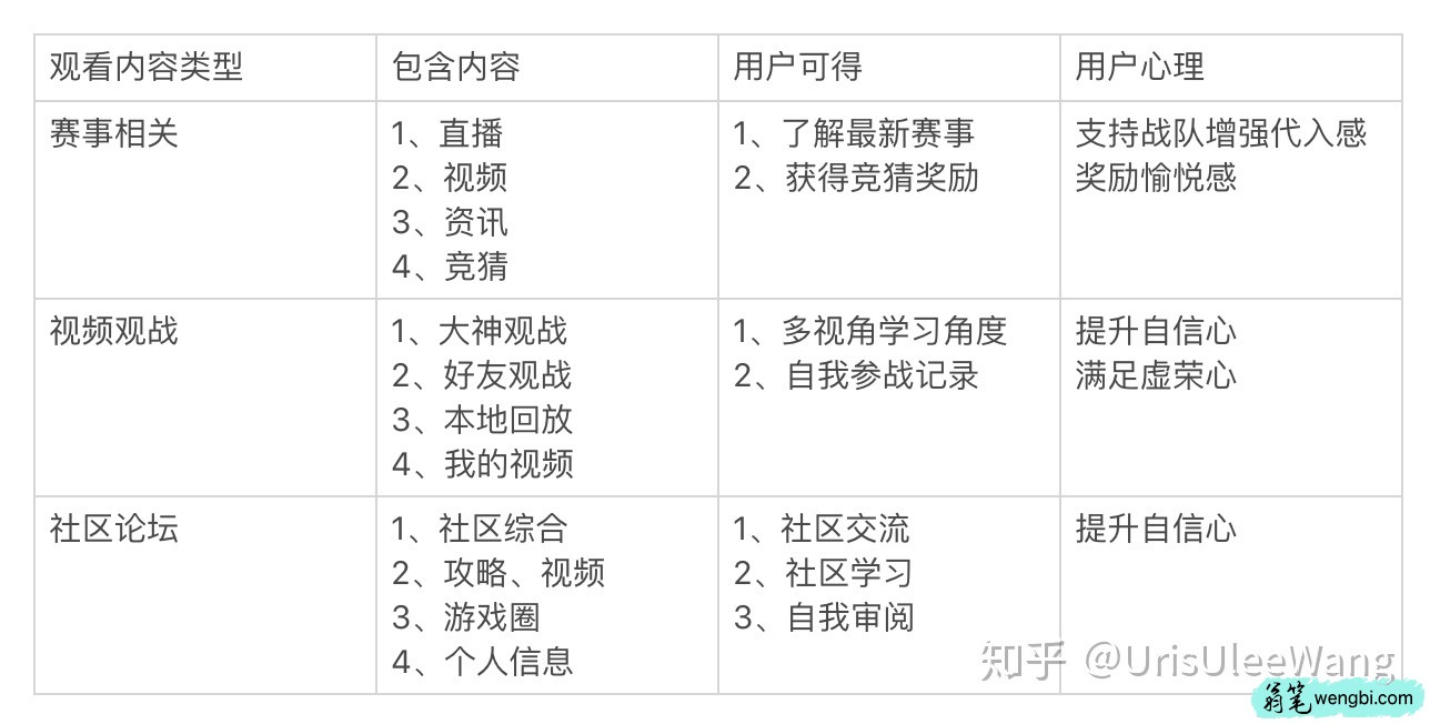 ③ 看的时间投入:在游戏内内置了赛事直播、视频观战、社区交流的内容,用户无需跳出即可在产品内观看。