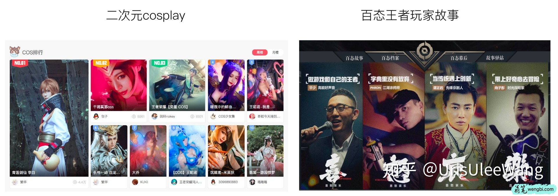 但是王者荣耀可以走一条更适合自己的道路。在微博上有很多对英雄的技能猜想、皮肤原画设计,IP 同人故事,腾讯择其优秀之处,真正的应用于一个游戏角色上,让用户见证有自己真实参与的痕迹,这会让用户产生更大的感情期望。这一点从要素 D出发,以王者荣耀文化圈发力,打造粉丝感情投入点。