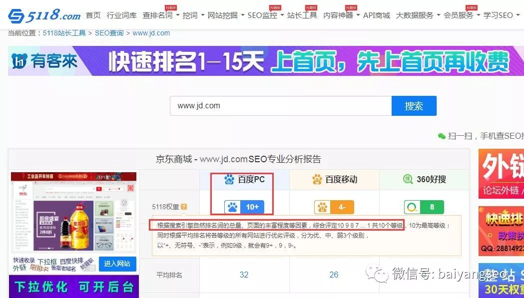 如上图的京东PR为7,算是比较高的了(PR0-10,7属于中上了)