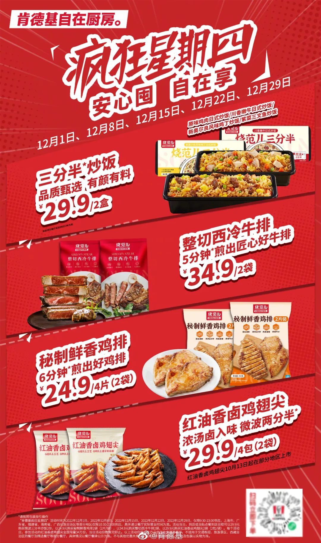 在年终促销、造节促销等大热的情况下,肯德基另辟蹊径,选择在每周四进行打折促销,一来与黑五区隔开来,二来是上班族已经上了3天班,给用户提供了一周放松的时刻。