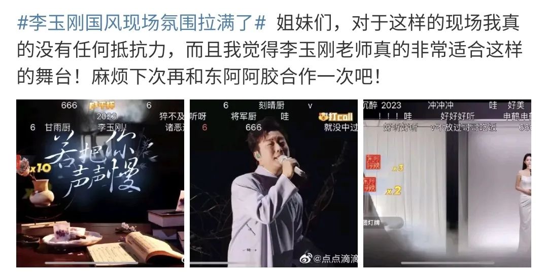 晚会结束后,微博上线#李玉刚国风现场氛围拉满了#话题,跨圈层KOL发微博激发多元的讨论内容,引起各圈层用户的讨论和共鸣,促使用户在感受纯粹的国风音乐之余,将讨论重点转移到品牌沟通上,带动年轻群体的深度卷入。