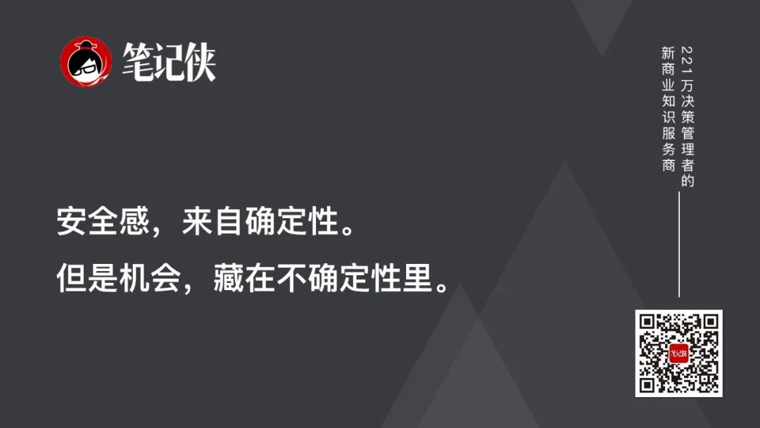 2.安全感,来自确定性。但是机会,藏在不确定性里。就像著名赛车手埃尔顿·塞纳所说:你不能在晴天超过15辆车,但在下雨天你可以。