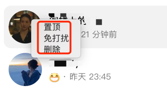 此外,针对好友,还可以设置“置顶、免打扰、删除”三项功能。