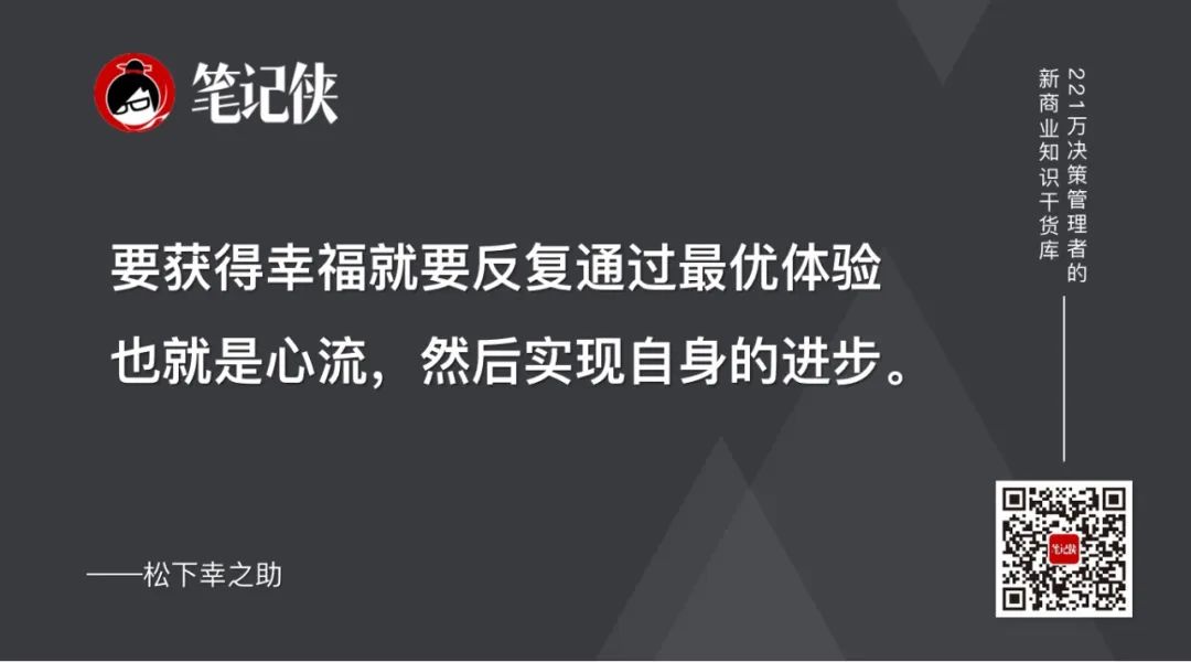 5.幸福并不来自外部,而是来自我们自身对待事物的方式。此外,真正的幸福并不是一时的快乐,要获得幸福就要反复通过最优体验也就是心流,然后实现自身的进步。