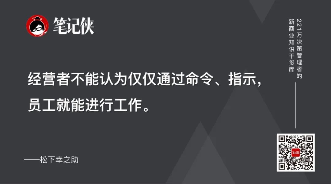 4.不管是规模不大时,还是之后发展到有很多员工时,松下电器都尽力让每个人设法创新,并一直以此为中心工作才走到了今天。经营者不能认为仅仅通过命令、指示,员工就能进行工作。