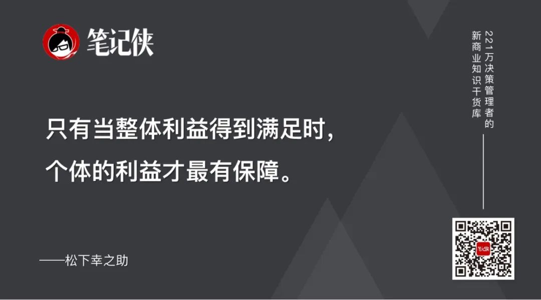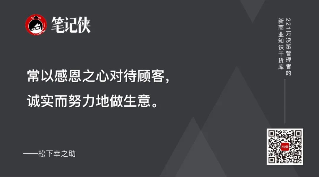 只有这样,消费者在拿到松下电器的产品时才会感到幸福,才会成为松下电器的支持者,他们的这份幸福最后也会传达给松下电器的员工们,如此一来幸福便翻倍了。
