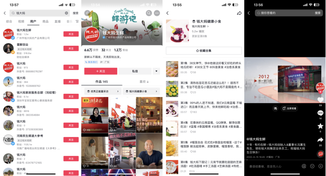 钱大妈在抖音的账号为「钱大妈生鲜」,有1.2万粉丝,账号主要是推广产品、品牌宣传等内容。