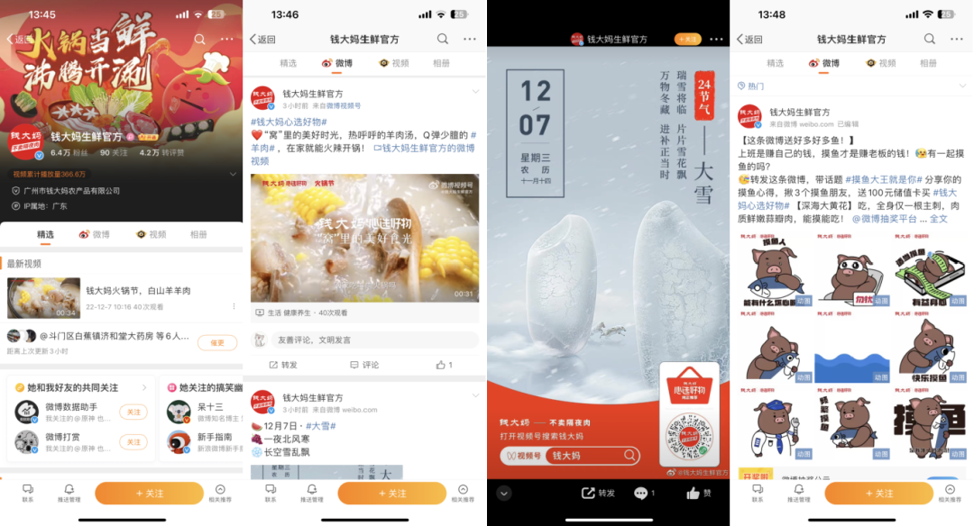 钱大妈在微博有6.4万粉丝,账号内容主要以产品种草、节日祝福、有奖互动为主。
